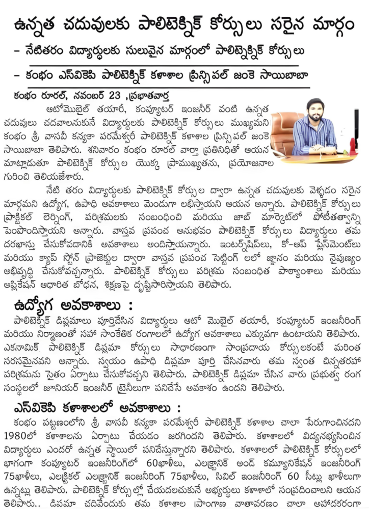 SRI VASAVI KANYAKA PARAMESWARI POLYTECHNIC, CUMBUM